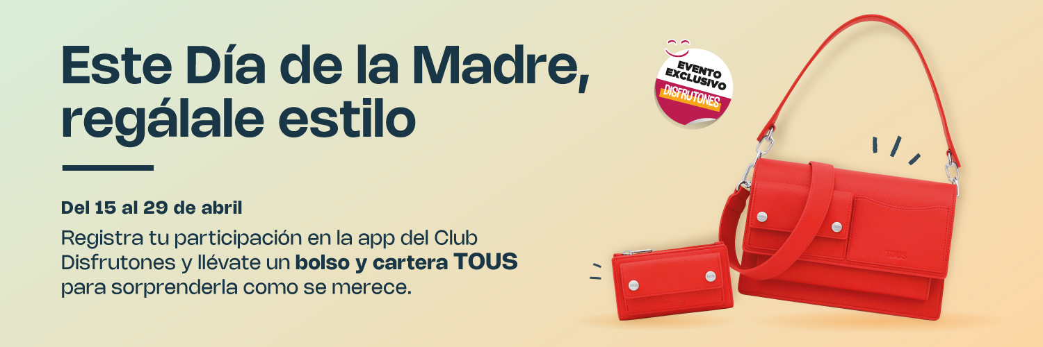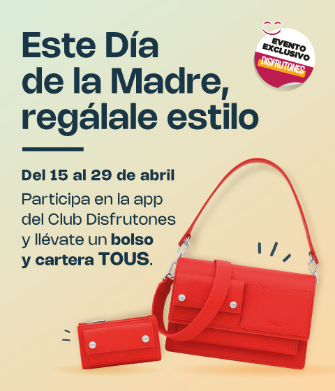 Este Día de la Madre regálale un premio con mucho estilo. PARTICIPA y podrás conseguir un precioso bolso bandolera y una cartera de TOUS. Entra en la App del Club Disfrutones, registra tu participación y... ¡mucha suerte! 🙂